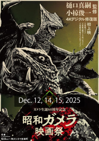 GAMERA 60th ANNIVERSARY PROJECT Three Gamera Classics Return in Breathtaking 4K Kadokawa Cinema Yurakucho Dec. 12 (Fri), 2025: 19:40, Dec. 14 (Sun), 2025: 17:45, Dec. 15 (Mon), 2025: 19:25